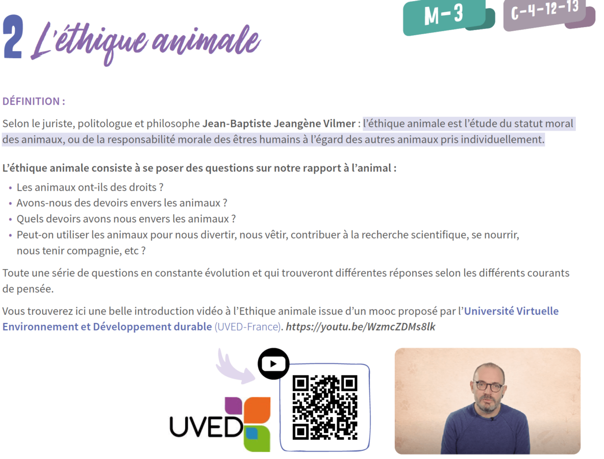 Formation vidéo (Mooc) gratuite et de qualité, sur le thème du respect de l’animal dans toutes ses dimensions (Sciences, Droit, Éthique, Éthologie, etc). Principalement pour les élèves du primaire, mais également du secondaire.