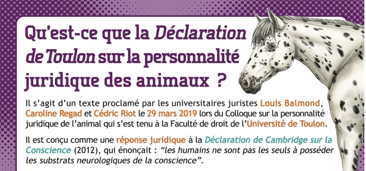 Fiche info à propos de la « Déclaration de Toulon sur la personnalité juridique des animaux » proposée par le site « Questions animalistes ».